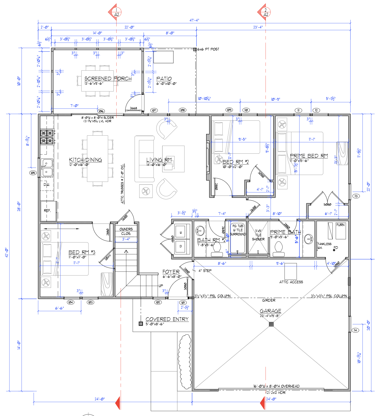 Our Largest Floor plan which features an upstairs bonus room. Complete with a screened in porch, two car garage, vaulted ceiling, and screened porch.